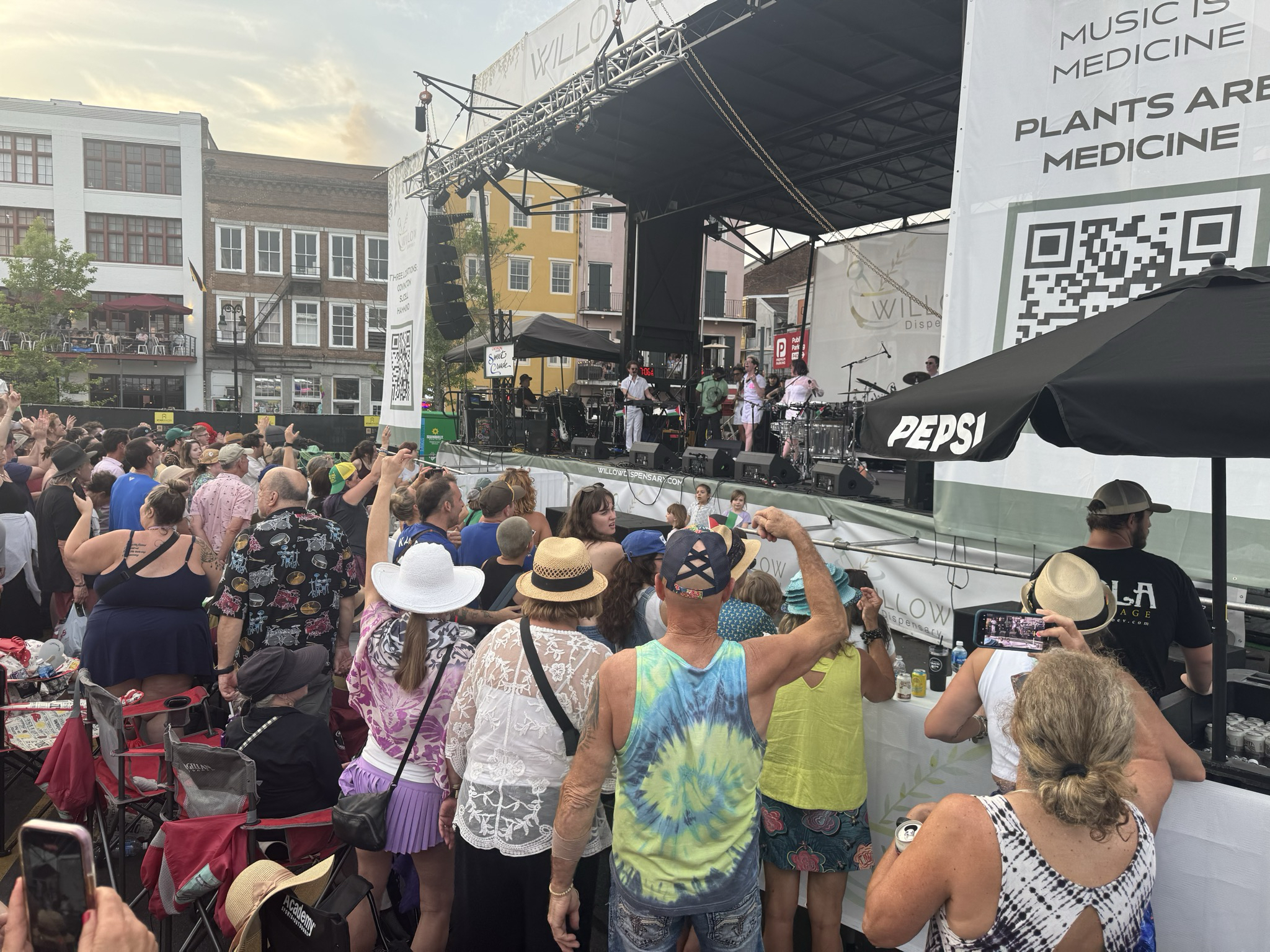 NEW ORLEANS — The Chevron Out of French Quarter Fest coalition received an overwhelmingly warm reception from the people gathered at the Willow Dispensary Stage at French Quarter Festival (FQF) on Saturday evening before they were promptly kicked out of the show by the New Orleans Police Department.